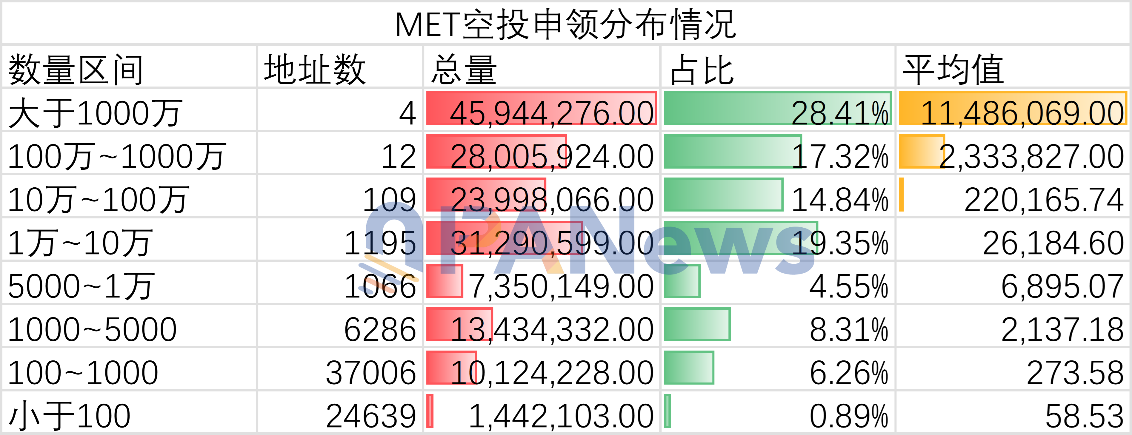据PANews统计,截至10月24日,MET空投已经发放的数量约为1.61亿枚,申领空投的交易笔数约为7.1万笔。平均每笔申领数量为2277枚代币。