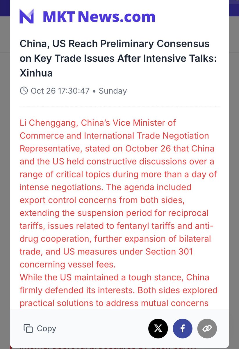 而和李成钢对谈的是贝森特,现在还没有看到任何来自于贝森特的发言,我不是觉得李成钢说的有问题,而是觉得还是双方共同确认会更加安全,毕竟川普的 TACO 和 反复 都是出名的。