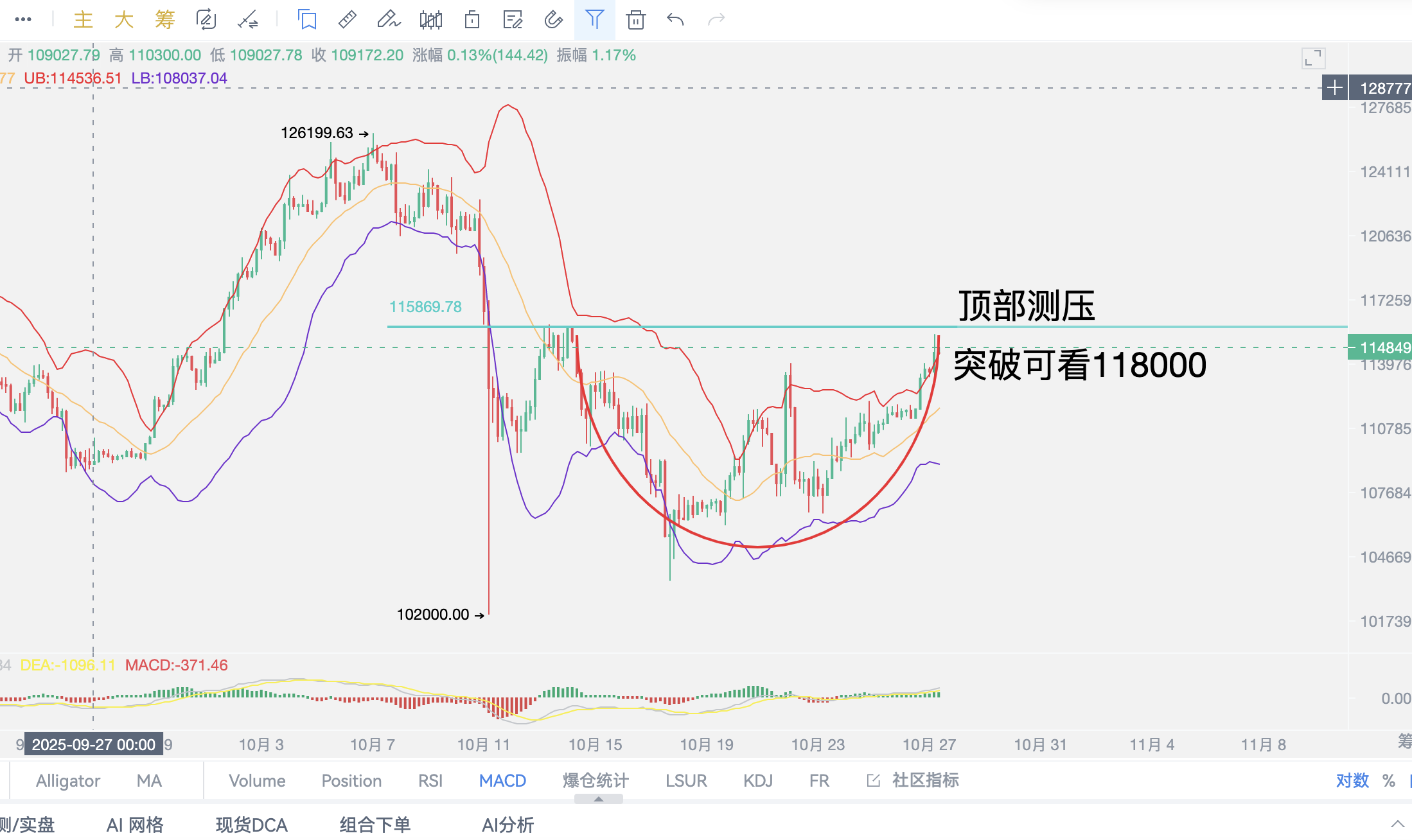 Does everyone remember what I said on Saturday? I mentioned looking directly at 114,000. In just two days, it has rebounded. If you haven't seen it, you can check the previous post. My analysis during this period has been incredibly accurate, and the state is very good. If you are still in a loss phase, it might be worth waiting and walking alongside Jiang Wei; perhaps you will have unexpected gains. Let's gather quickly and meet at the happy base camp. Next, we will analyze the current market.