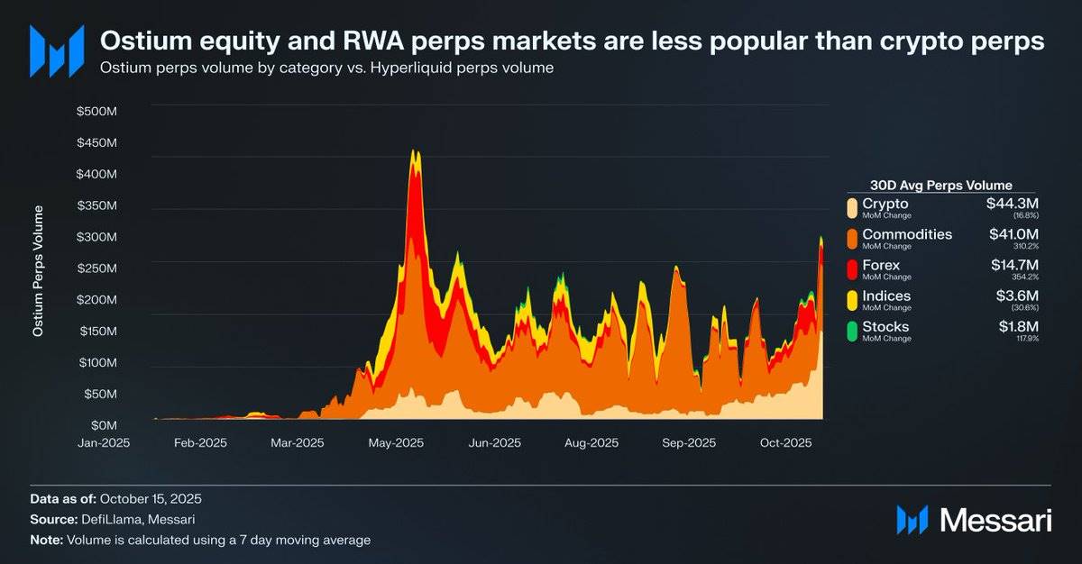 • For example, the daily trading volume of stock perpetual contracts on the Ostium platform is only $1.8 million, while the trading volume of cryptocurrency perpetual contracts reaches $44.3 million, indicating weak market demand.