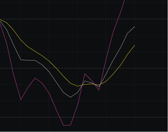Obv上看,目前块线跌到了慢线下方,但方向向上,同时慢线方向也向上,如果看多,那快线就应该尽快的站上慢线,如果看空,那慢线起码得先走平,后续我们看这里如何选择。