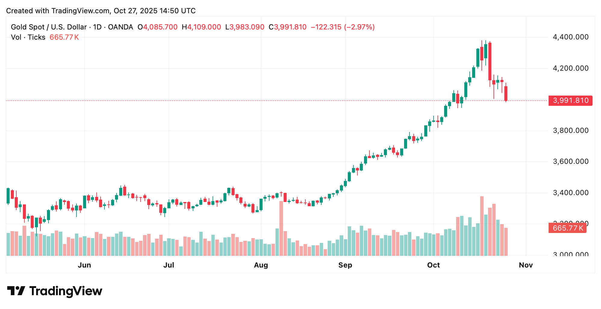 - 为什么黄金跌破4,000美元? 与贸易乐观情绪相关的风险偏好改善减少了避险需求。