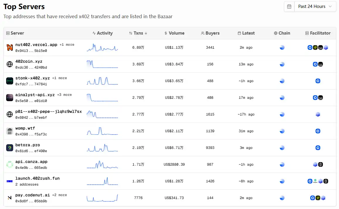 However, now, data from just 24 hours has already far exceeded the past 30 days' data. In the past 24 hours, the top 10 services by interaction activity have received approximately 280,000 transactions, which is already double the previous 30 days' data. Meanwhile, the amount reached approximately $246,000, also double the previous 30 days' data.