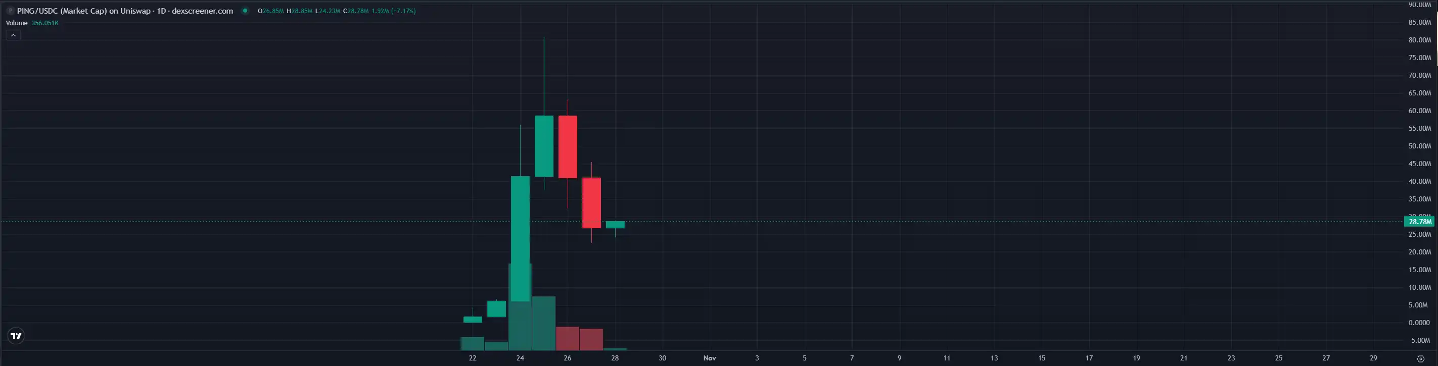 As the first meme coin born from the x402 protocol, $PING was once compared by many players to the first token of the former BRC-20 protocol, $ORDI, during its most FOMO phase. However, after briefly surpassing a market cap of $80 million, $PING has not been able to continue its rapid ascent and has currently retraced to a market cap of about $29 million.