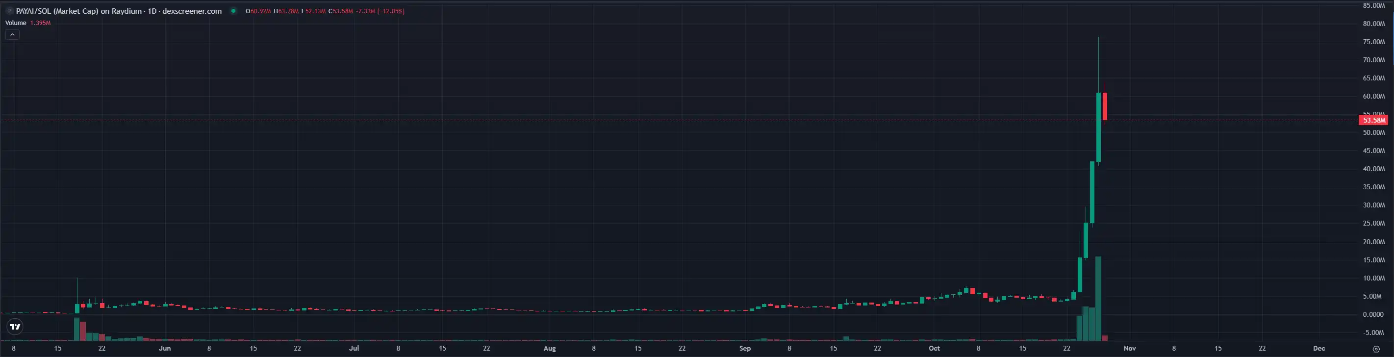 $PAYAI has emerged as a new leader in the x402 protocol. Yesterday, the market cap of $PAYAI briefly surpassed $76 million, having risen approximately 12 times since October 24. Currently, the coin has retraced to a market cap of about $53 million.