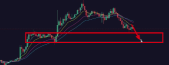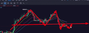 那么我们就要继续往下去看下面的支撑位置,下面在这里构筑了一个平台同样的跟比特币一样可以往下去跌破,但是不能够往下去跌穿,所以说有一些有冒险精神的小伙伴可以考虑