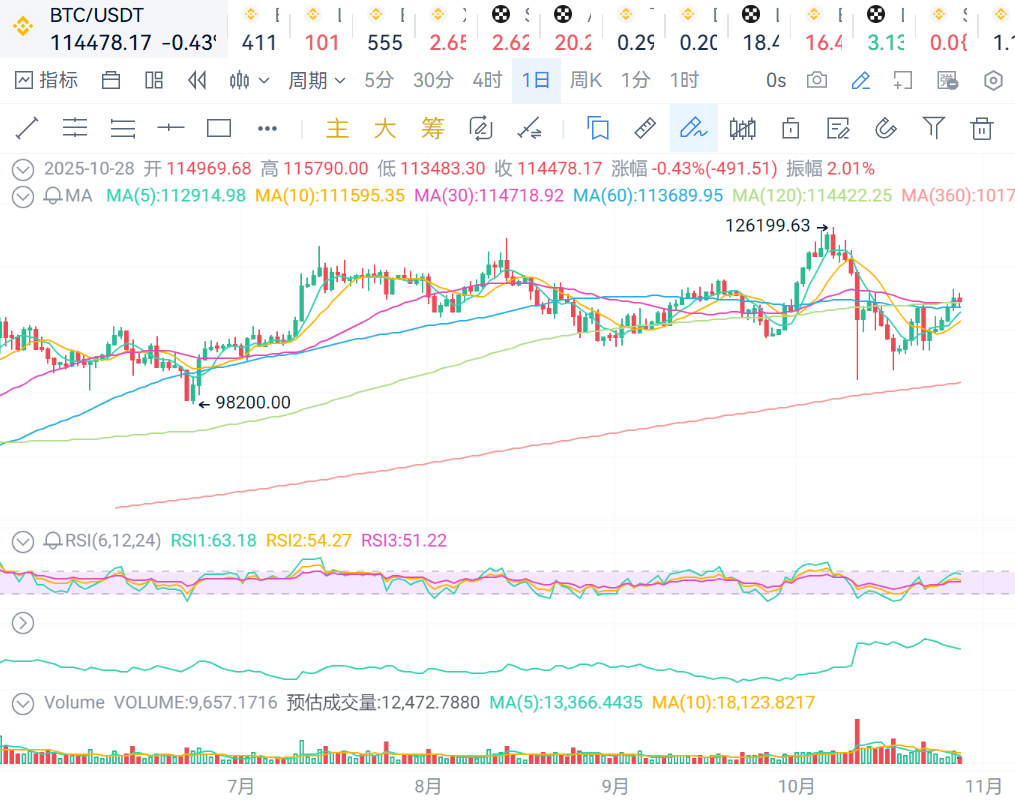 10月28日,美股期指期货走弱,亚洲股市集体下跌,欧股多数低开。美元指数小幅走低,日元走强,美债收益率小幅下行,金银持续回调,现货黄金跌破3900美元/盎司,加密货币普遍下跌。