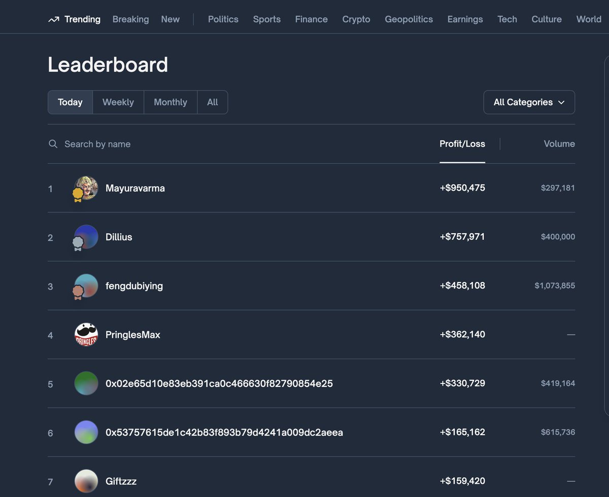 更夸张是Fengdubiying老哥一把赚了快50万美元,在Polymarket Daily PNL里只能排到第3,前两名是押注NHL的交易员,分别一天赚了95万和76万美元(图三).