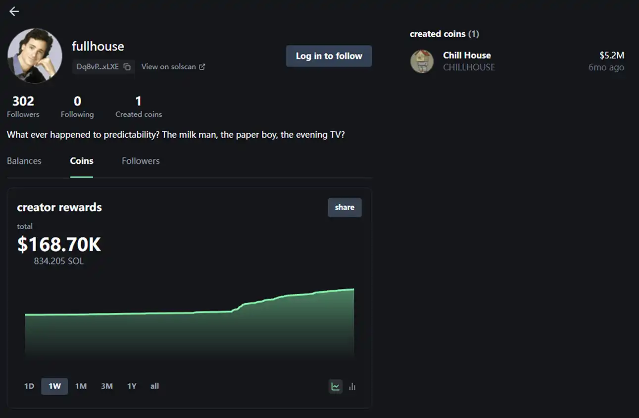 Fast forward six months, this idea has generated nearly $169,000 in creator income. An interesting idea, creating a meme coin, has yielded over a million RMB, which is truly the magic of Web3.