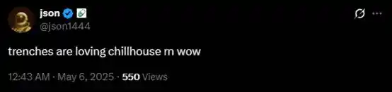 Chillhouse's start can be described as smooth. Within less than a week after the token's birth, it broke through a market cap of 10 million dollars. @json1444, who is now the Chief Content Officer of pump.fun, mentioned Chillhouse in its first week of existence.