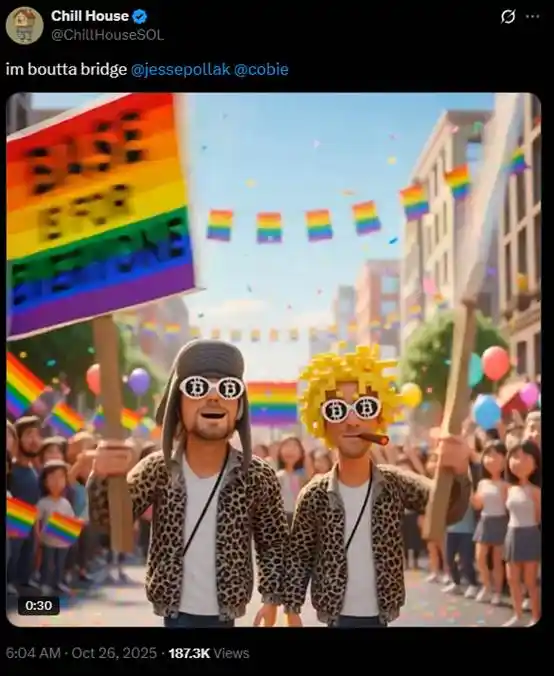 This Solana meme coin is $chillhouse. It is not a new coin; since its successful launch on pump.fun, Chillhouse has been on a journey for half a year and has always been one of the important meme coins in the pump.fun ecosystem. So, what kind of coin is this? What connects it to this cross-camp "meme abstraction show"?