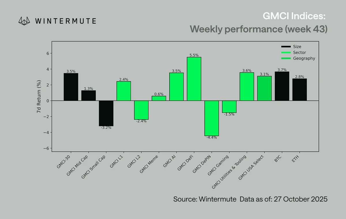 DeFi and AI sectors: Benefiting from strong protocol revenue data and improved on-chain activity, leading the market.