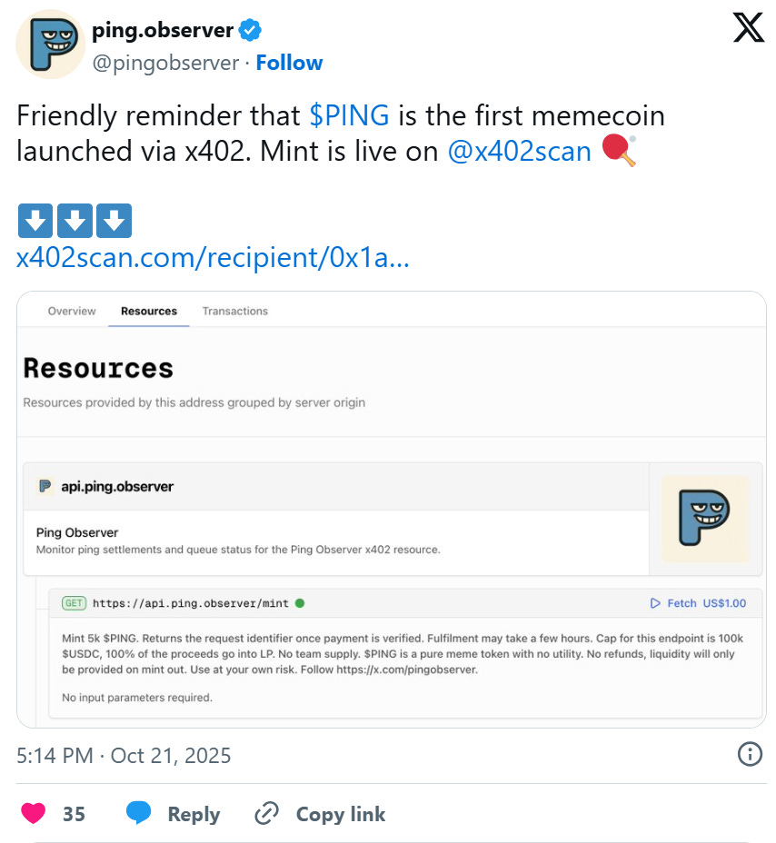 We have also seen the rise of tokens like $PING, which are minted through HTTP requests, reaching a market cap of slightly over $70 million.