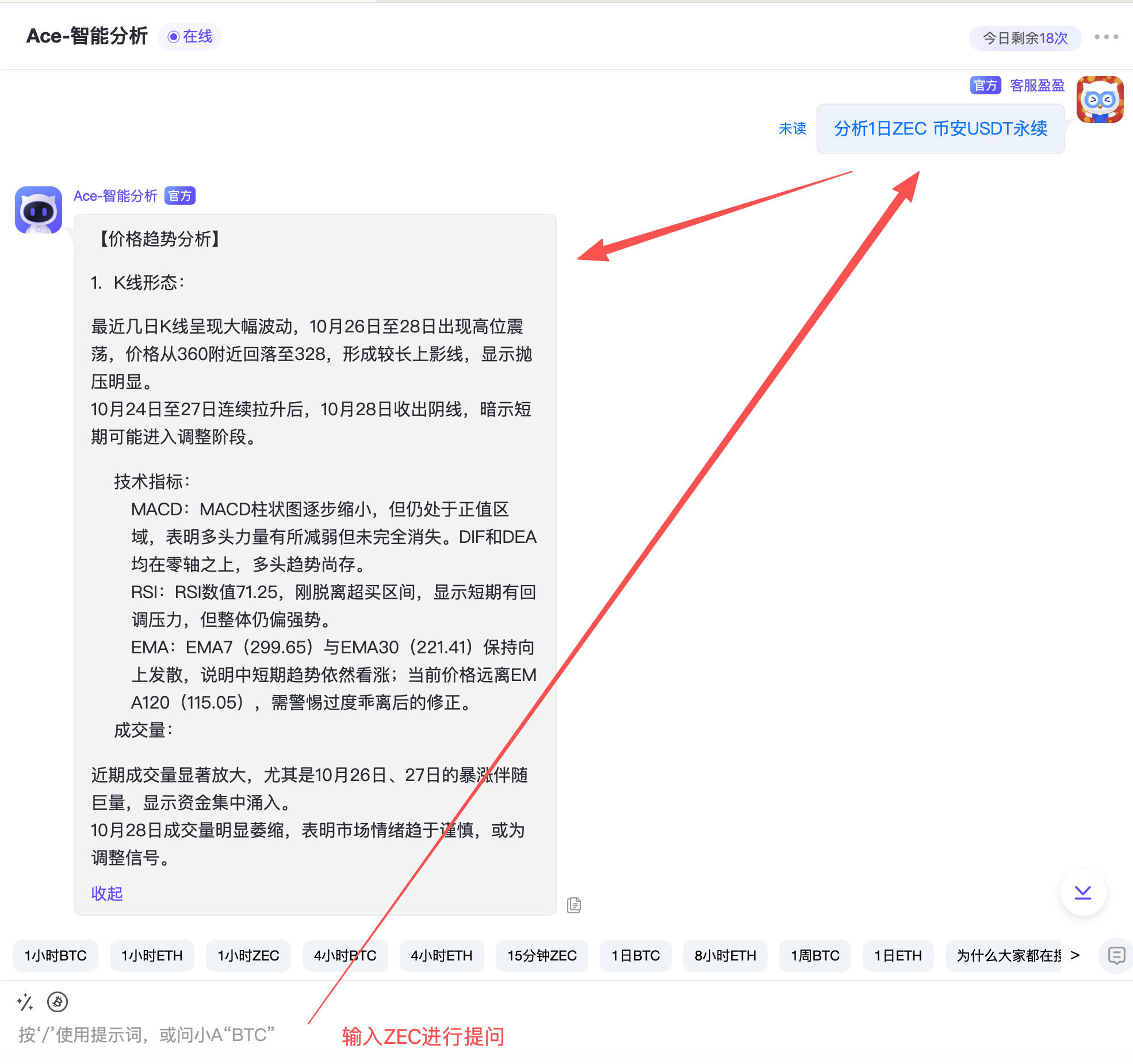 输入示例:分析 1日 ZEC 币安 USDT 永续