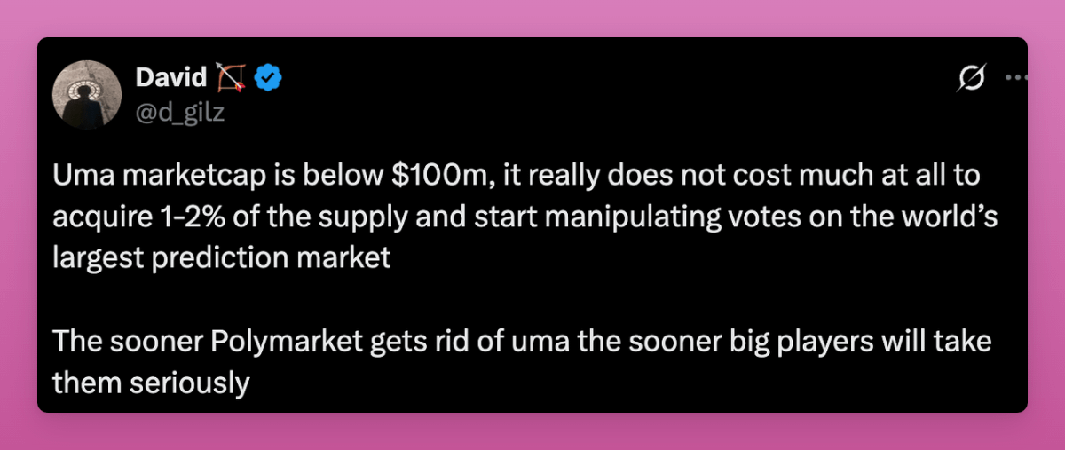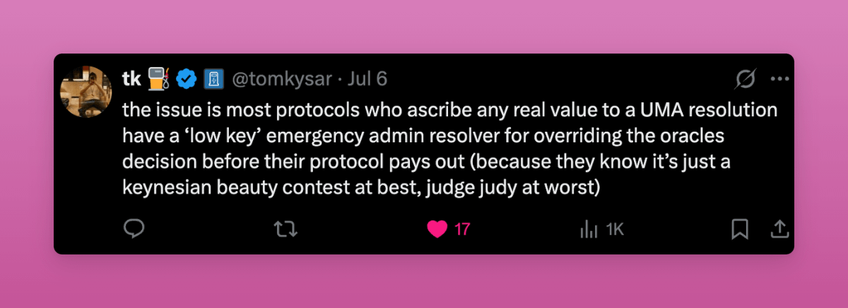 That hurts trust as UMA rewards consensus instead of truth.