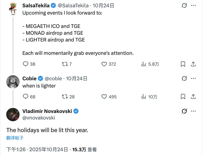 The latest hints from Lighter's CEO on Twitter have given the community a clearer expectation regarding the airdrop timing. He stated that the second season points program will end before the end of the year, but not on December 31, and tweeted that "the holidays will be lit this year."