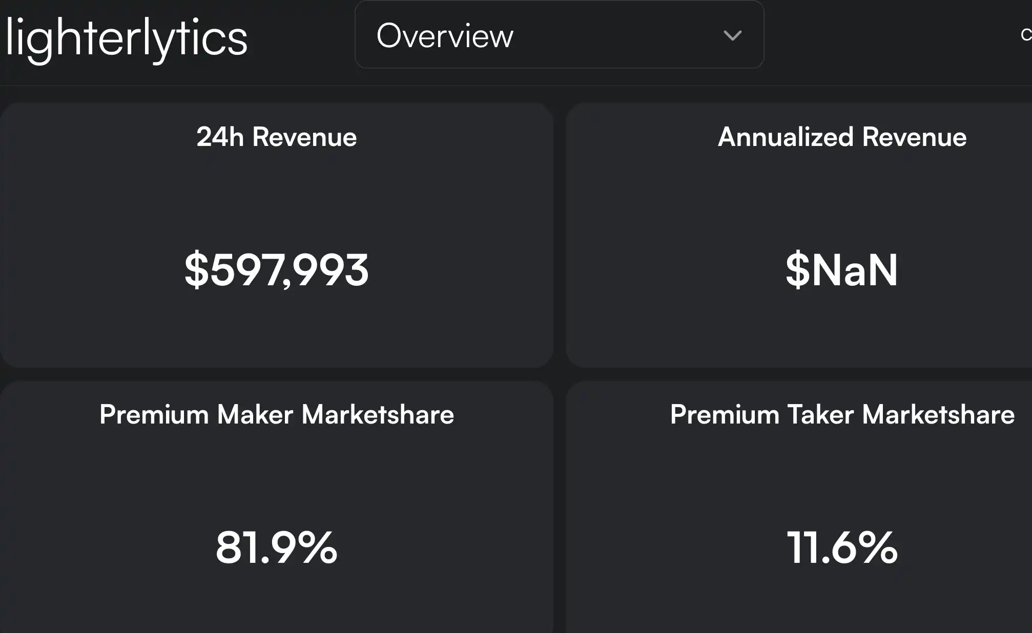 According to community-created dashboard websites and ighterlytics data, Lighter's data growth shows that its current TVL is $1.15B, with a growth rate of 481% over the past three months.