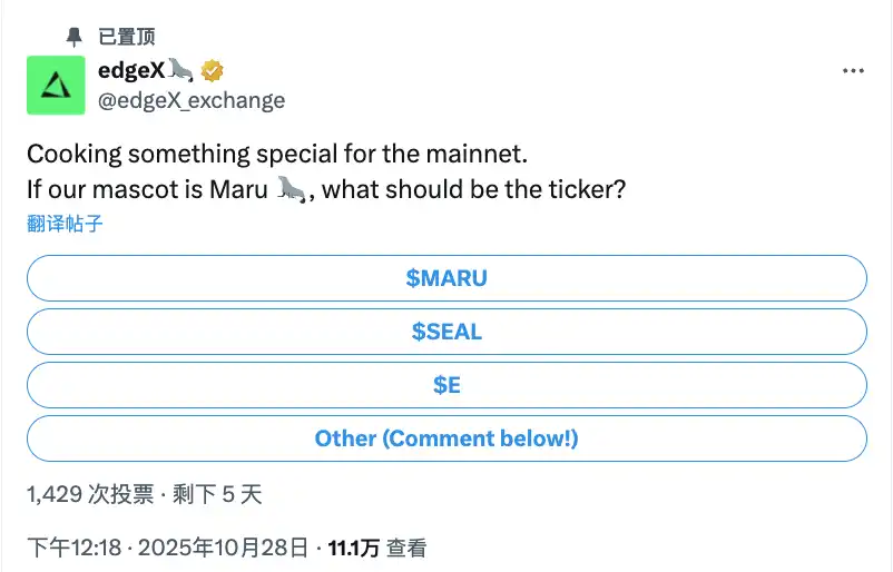 edgeX's official Twitter initiated a widely discussed poll: "Preparing something special for the mainnet. If our mascot is Maru (seal), what should the token symbol be?" This tweet garnered over 111,000 views and 141 replies within 24 hours, interpreted by several media outlets as a clear signal of an upcoming TGE.