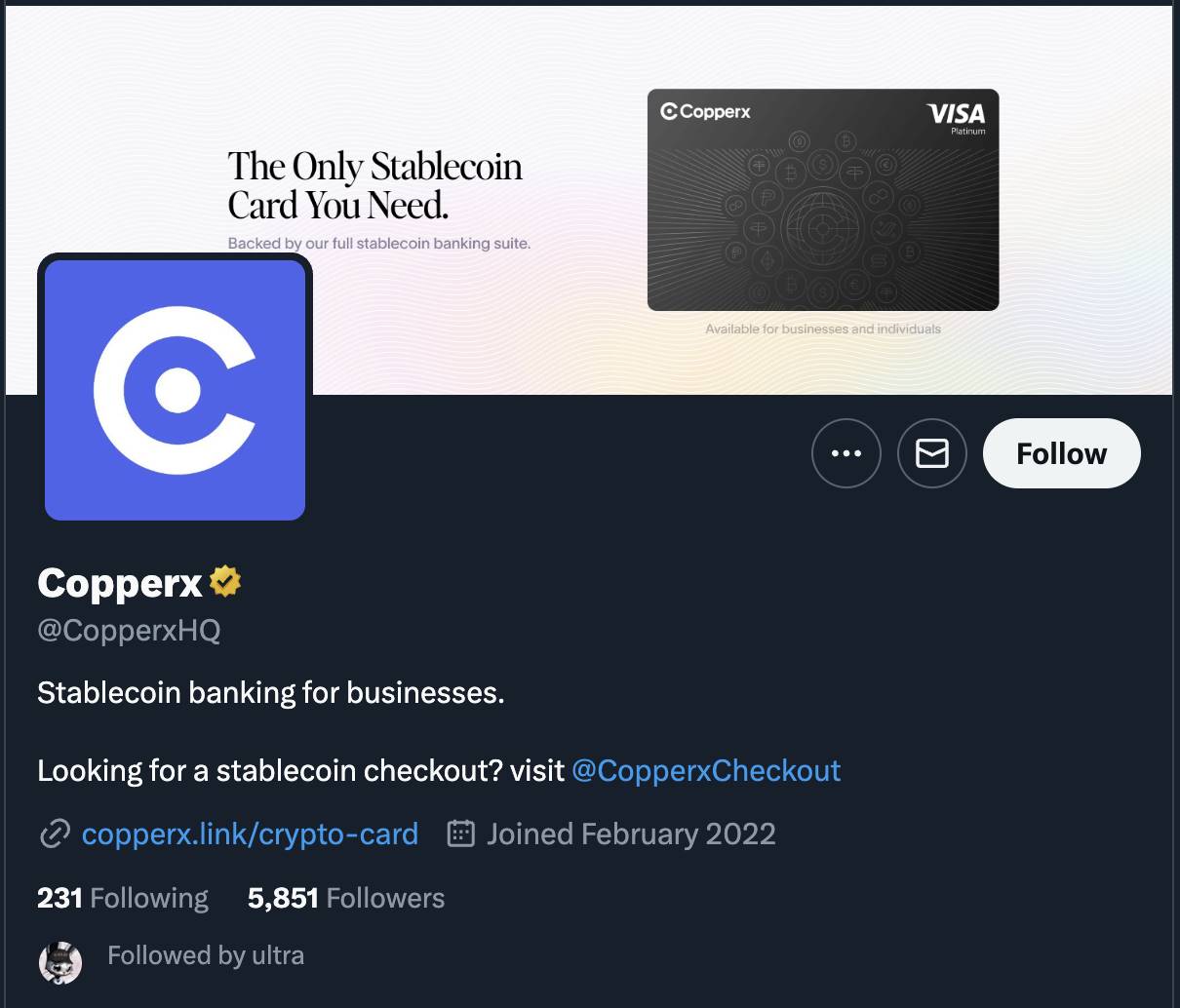 Copperx 是面向企业的稳定币银行服务,主要针对全球企业提供加密货币与法币相结合的金融服务,目前已有 150 家企业使用其产品,另有 300 家企业正在接入流程中。