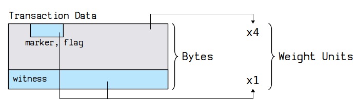 虽然变相扩大了区块容量,但隔离见证也受到区块大小限制。比特币的区块大小限制为 1M bytes,由于 witness 数据不包含在这个限制中,为了防止 witness 数据被滥用,仍然对总的区块大小做了限制。引入了一个新概念叫块重量(Block weight)