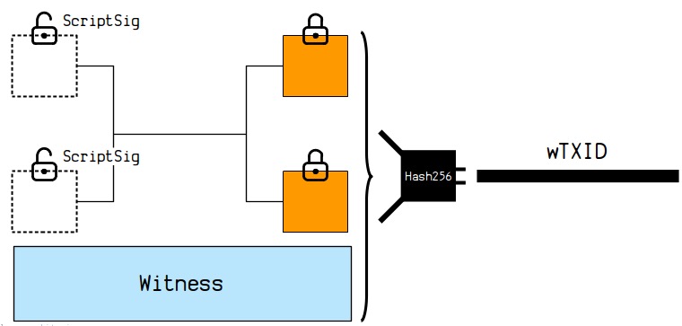 单个见证交易的交易 ID(wTXID)的形成原理示意图