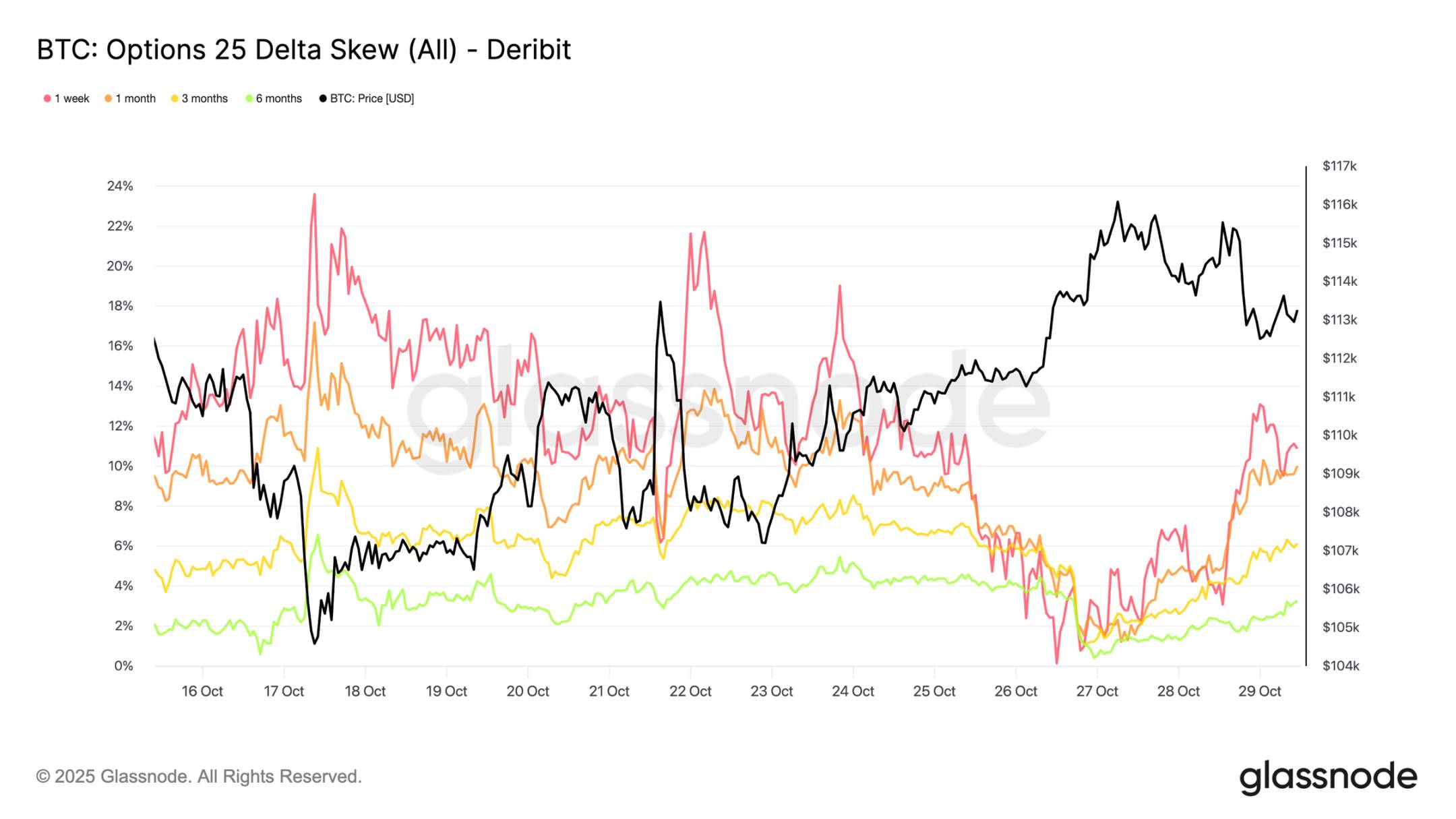 Longer-term contracts, such as 1-month and 3-month, have also reset sharply, showing only moderate premiums for put options. This shift indicates that traders have removed most of their downside hedges. Positions are now closer to "moderately bullish/bidirectional" rather than "panic new lows," aligning with the broader stability seen in Bitcoin's recent price movements.
