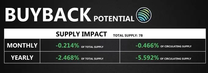 So far, they have repurchased 3% of the token supply. At this rate, they will be able to buy back nearly 20% of the circulating supply within a year.
