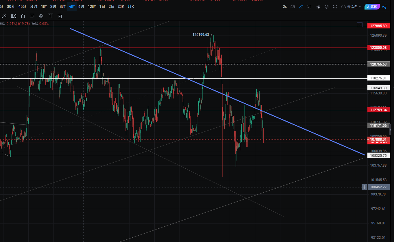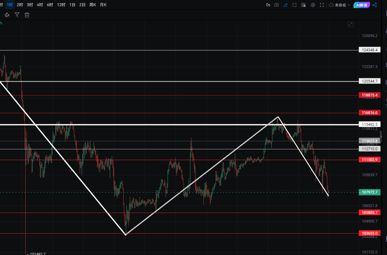Everyone should pay close attention to Bitcoin's 111500, 108800, and below that, 107500, 106500, and 105200. For Ethereum, focus on the second rebound point around 3820, 3880, and 3950, and below that, pay attention to 3750, 3720, and the cyclical turning point at 3650. It is recommended to primarily focus on short positions. Enter positions proportionally around the range for swing trading. Currently, not looking at actual operations is no different from making predictions and divinations. However, adjusting positions and leverage in these ranges is good in the short term. There are two possible structures for the future market: one is to dip to 105200 and then rebound to move in a range, and the other could be to move towards 110000 for a period of repair.