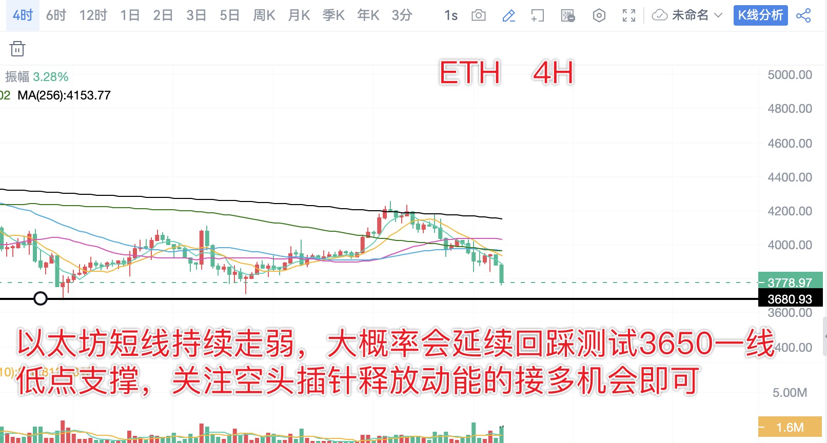 ETH :3815/3880空,目标3700/3650;下方3700/3650多看8-150点反弹