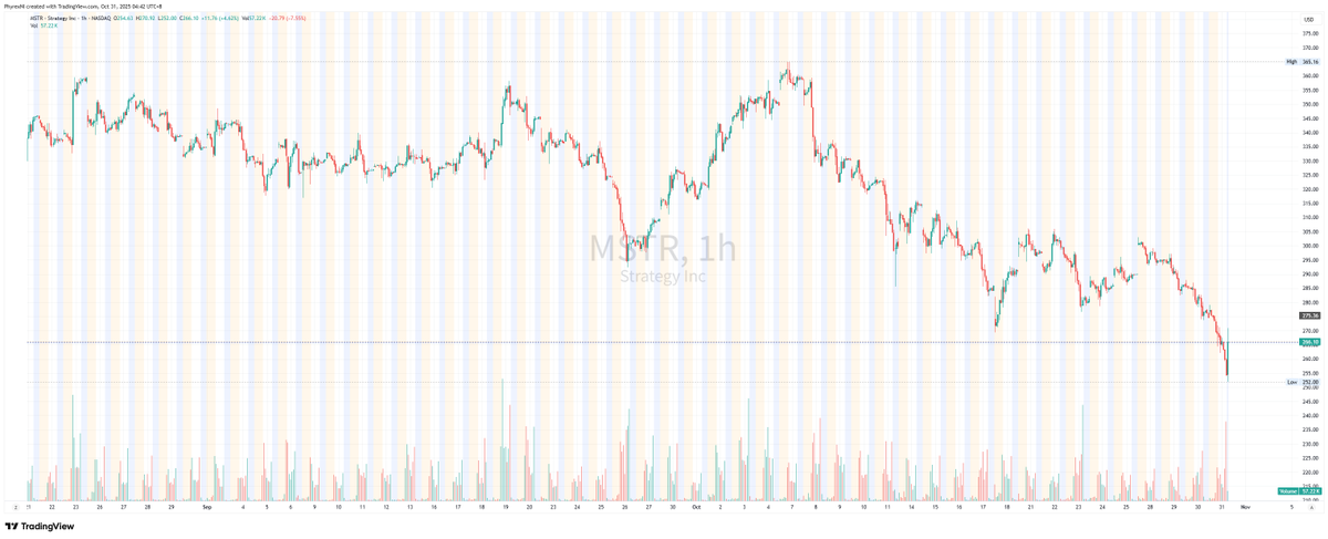 写在前边,周四美股闭盘后公布了 MSTR 的财报,每股收益 8.42 美元,市场预期 7.90 美元,第三季度收入 1.287 亿美元,市场预期:1.183亿美元,MSTR 第三季度的财报超过市场预期,盘后价格上涨了超过 5% 。