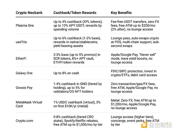 不同加密新银行的差异,主要体现在收益率、返现比例和区域侧重点上,但它们都解决同一个核心问题:让人们能花加密货币,同时无需放弃自我托管,也不用频繁转回银行存款。