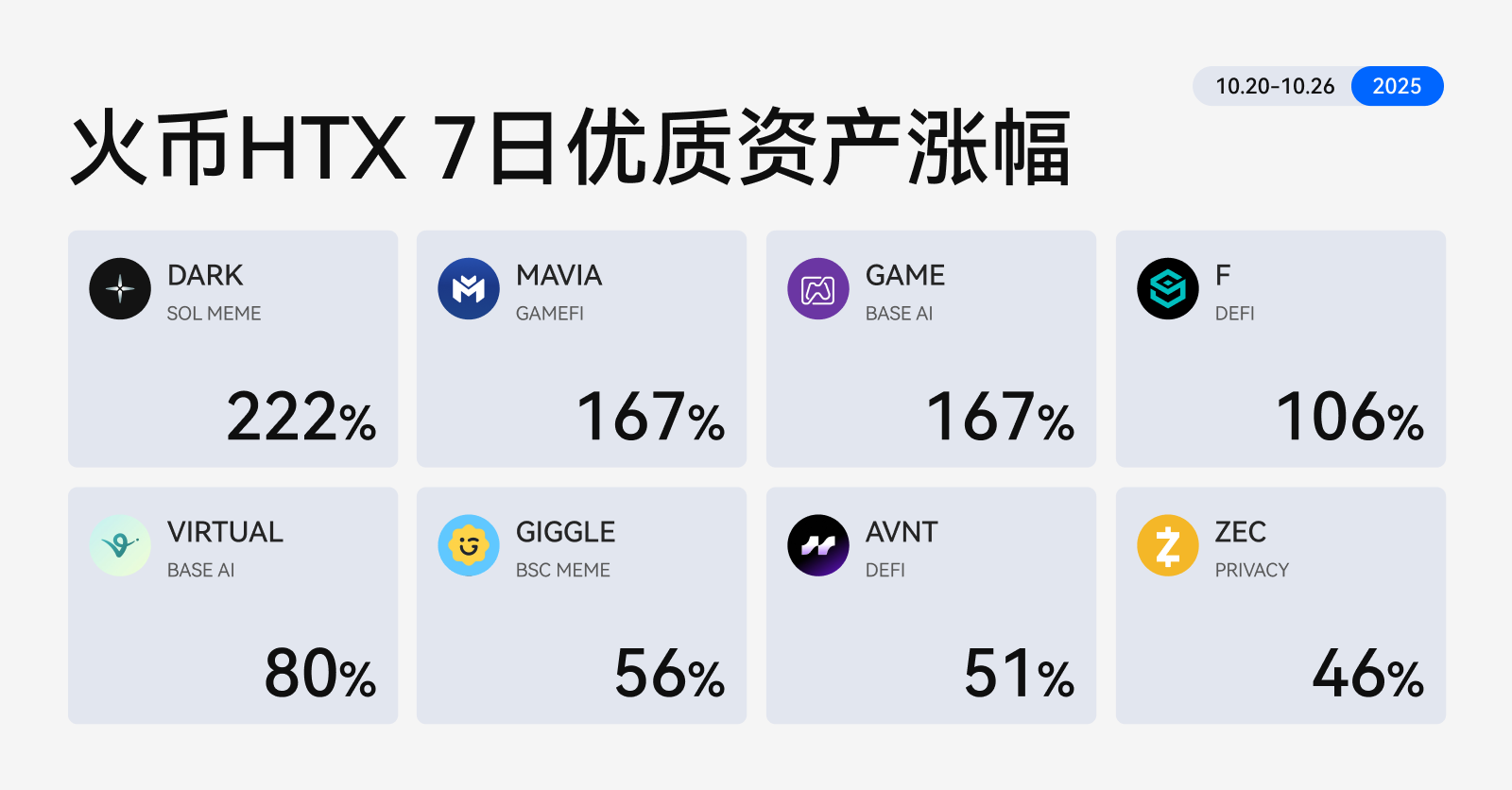火币HTX 7日优质资产涨幅——10.20-10.26 2025