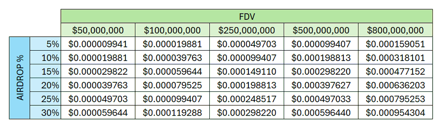 • 列:代表代币上市时的完全稀释估值(FDV)。