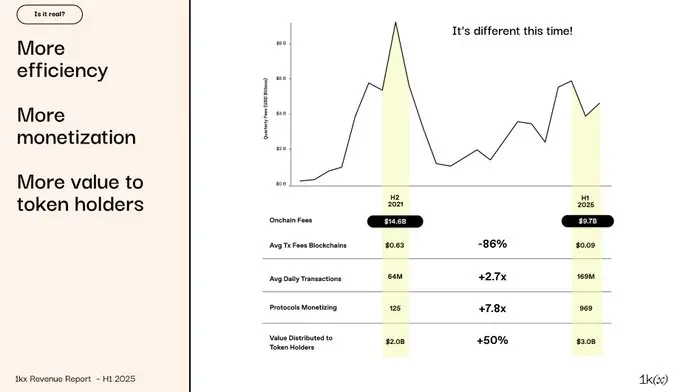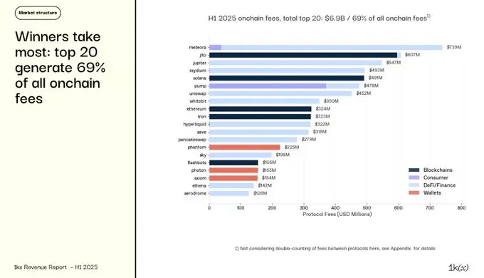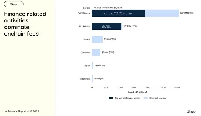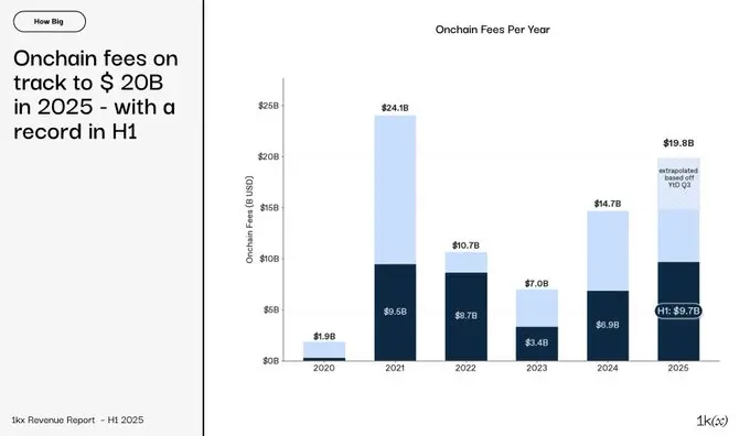 1kx has released the most comprehensive on-chain profit report for the crypto market to date: "1kx On-Chain Revenue Report (First Half of 2025)." The report summarizes verified on-chain fee data from over 1,200 protocols, clearly depicting user payment paths, value flows, and the core factors driving growth.
