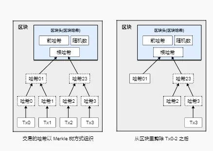 If a coin's recent transactions occurred sufficiently far back in the blockchain, the spending transaction records prior to that can be discarded—this is to save disk space. To achieve this without compromising the hash of the block, the transaction records' hashes will be included in a Merkle tree, with only the root of the tree being included in the block's hash. By pruning branches, old blocks can be compressed. The internal hashes do not need to be preserved.
