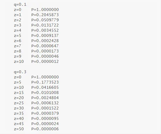 Obtaining partial results, we can see that the probability decreases exponentially with the increase of Z: