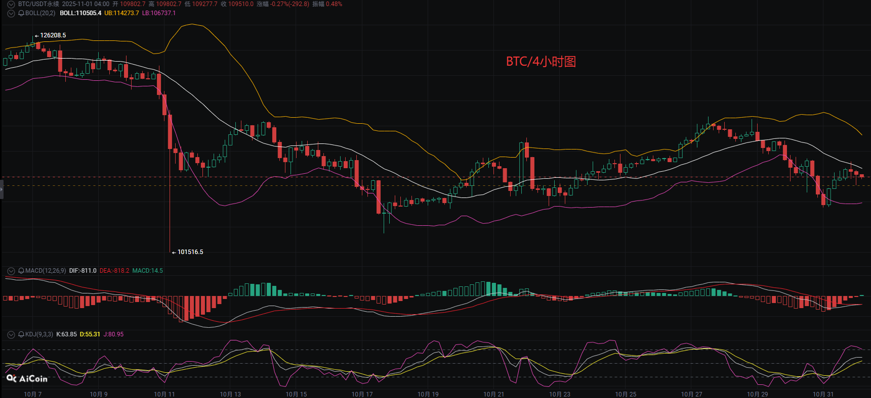 Bitcoin experienced a strong washout in the early hours of the day, rebounding after touching a low of 116,200 yesterday morning. The subsequent market corrected and broke through the resistance at 110,000, and is currently rebounding in the 109,500 area. The day has seen a "roller coaster" market, with price fluctuations of several thousand points, making the price movements exceptionally intense. It is recommended that all cryptocurrency friends control their risks reasonably and avoid heavy positions.