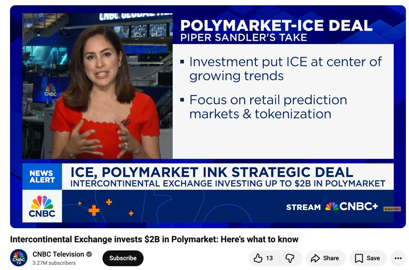最令人震惊的,是纽约证券交易所母公司 ICE 对 Polymarket 的 20 亿美元投资。这不仅仅是一笔投资,更是传统金融对预测市场的"官方认证"。