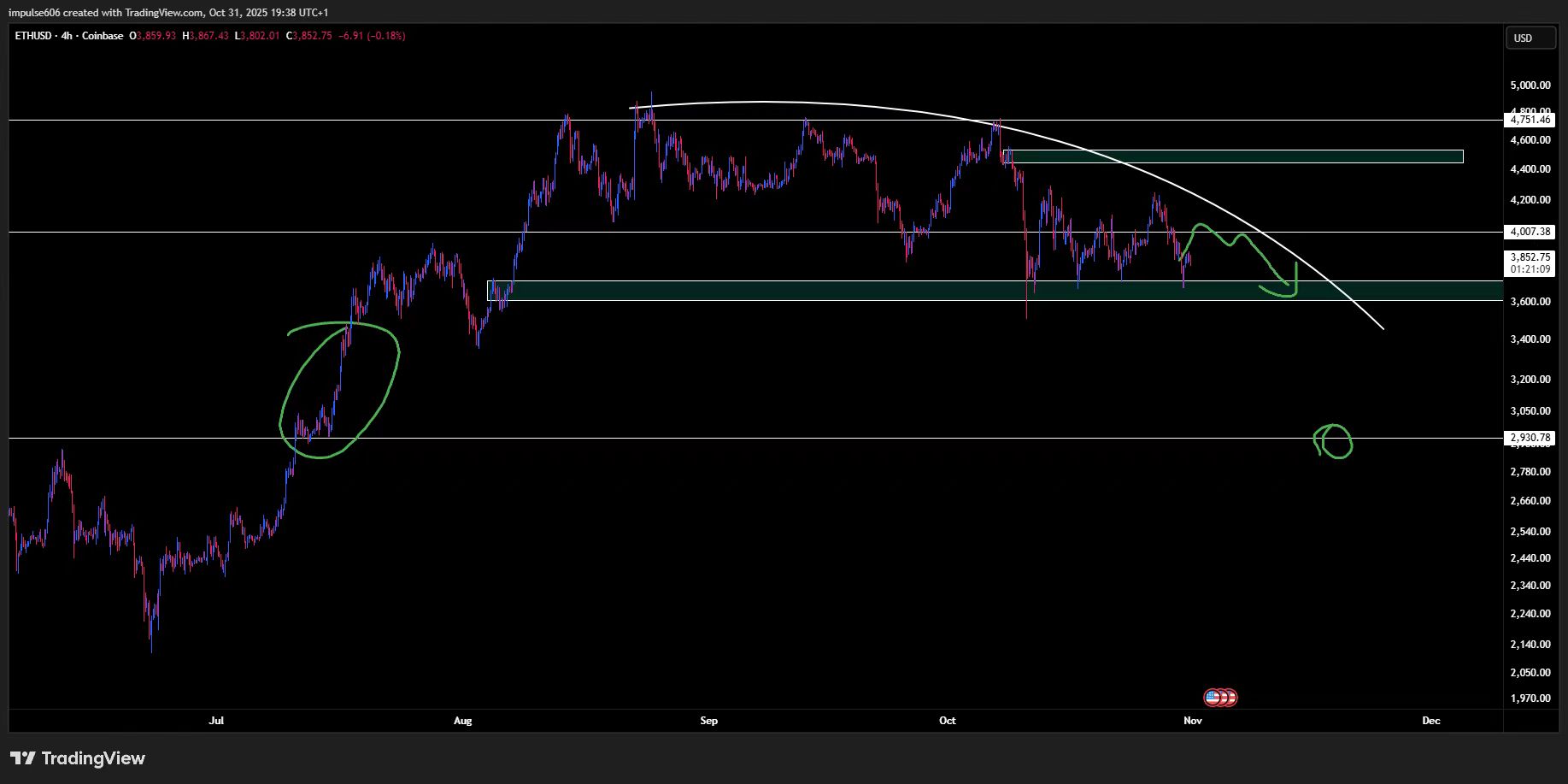 After a short-term pullback near the key level of 3674, it quickly rebounded. Attention should also be paid to whether the weekly level can recover above the significant level of 4040, as this will be the most important point here. Currently, there are signs that the total holdings of large whales are slowing down.