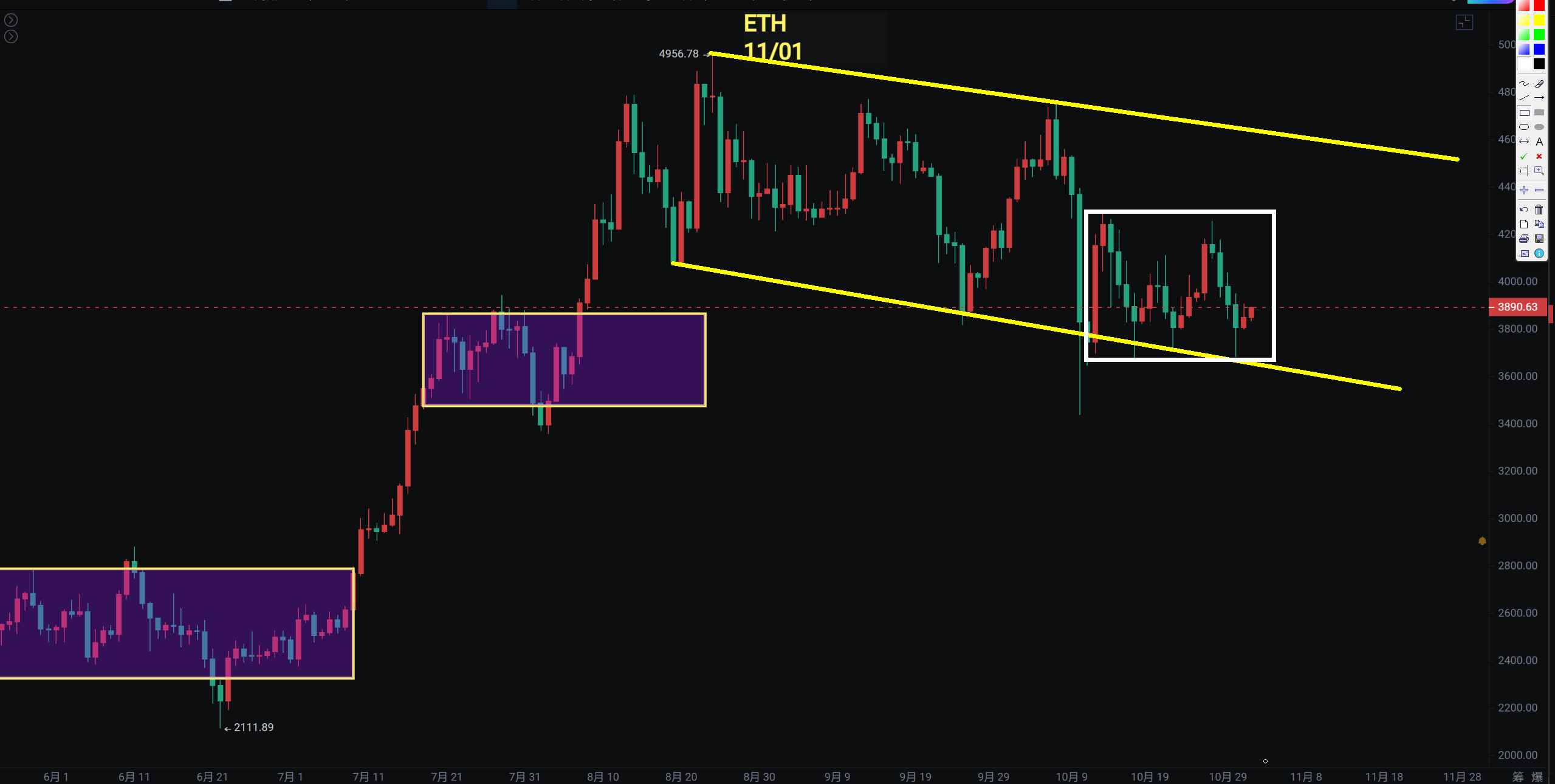 这里仍然是要看比特币日线级别的三角向上突破还是向下突破,以太才会跟随。