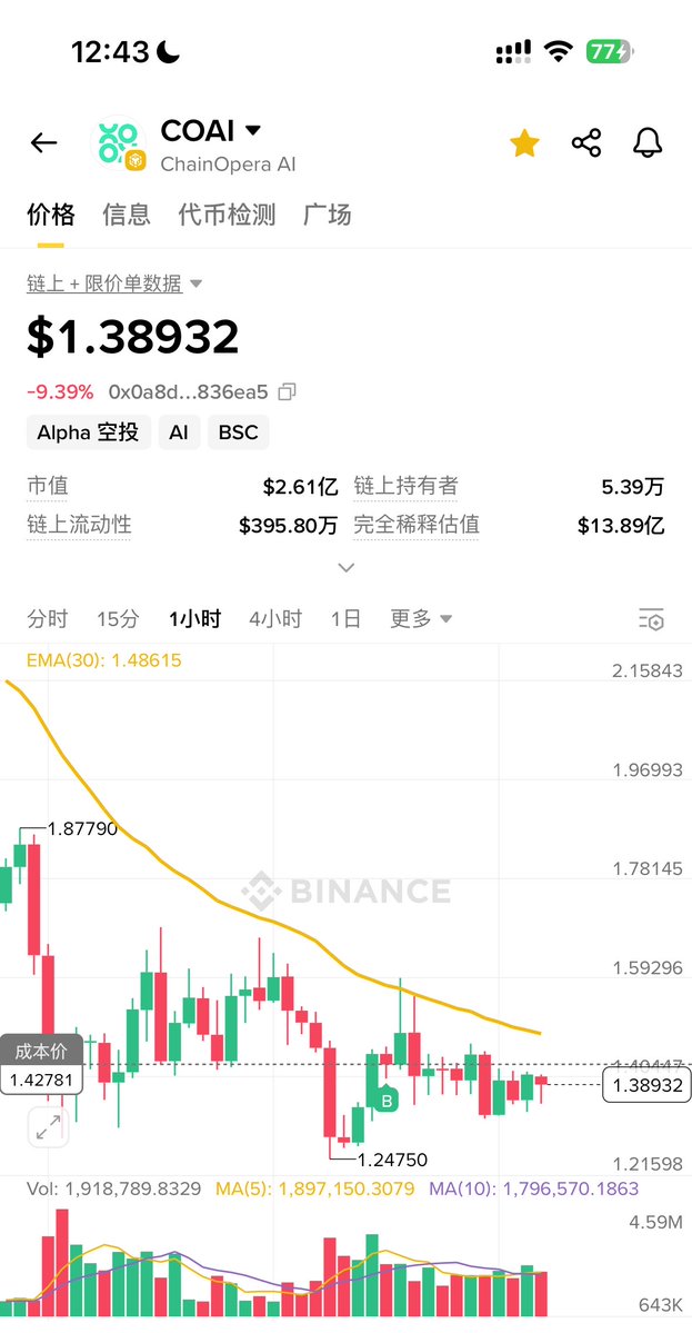 这次 $COAI 暴涨暴跌,本质是热钱炒作+情绪踩踏,并非项目基本面实质性变化。早期玩家获利了结,杠杆爆仓,散户恐慌割肉,把泡沫挤干净了。现在价格反而回到了一个让人相对安心的高度。
