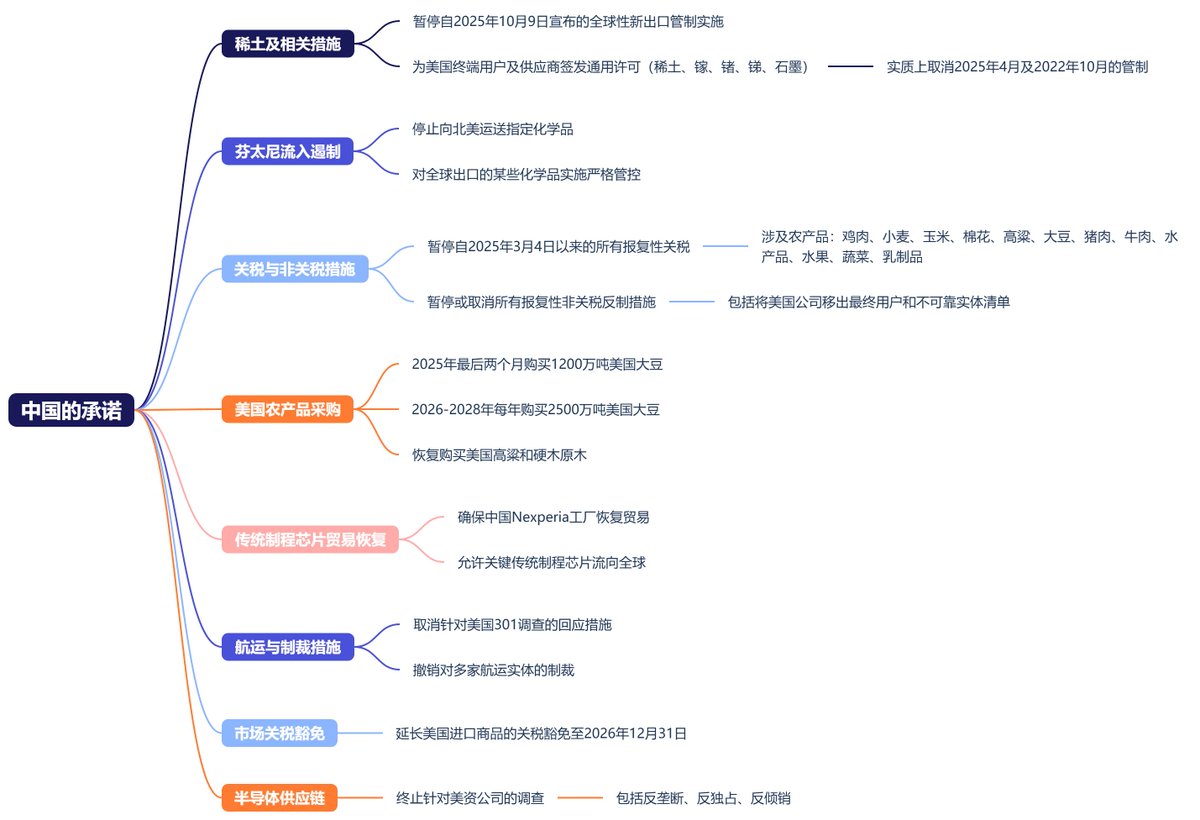 1. 中国将暂停自2025年10月9日宣布的关于稀土及相关措施的全球性新出口管制的实施。