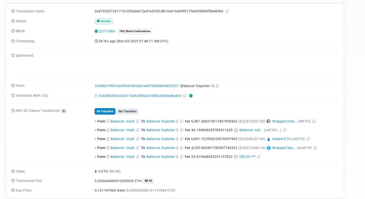 Balancer V2 Hacked, $128 Million Stolen