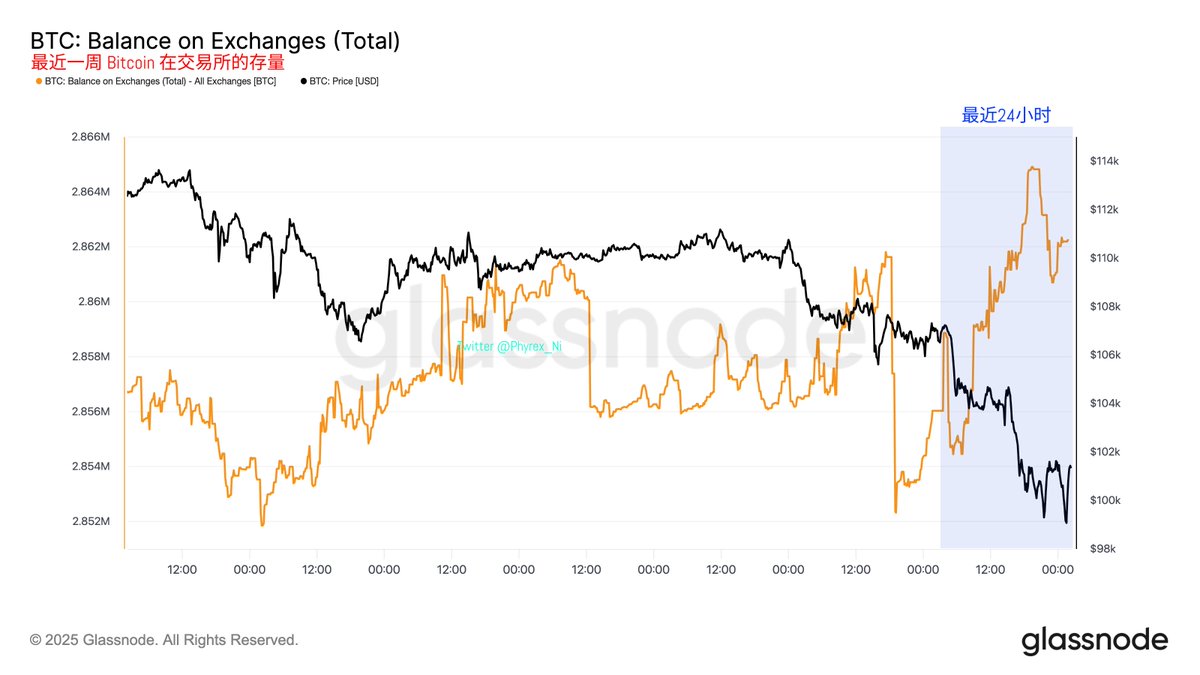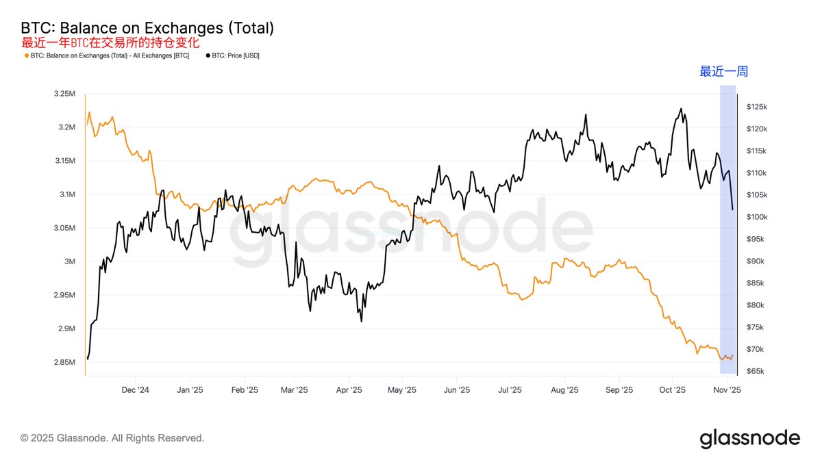 我个人最关注的仍然是交易所的存量数据,从细节数据来看周内随着 BTC 价格的下跌,存量有逐渐上升的趋势,周内所有交易所的 Bitcoin 存量增加了 10,000 枚。