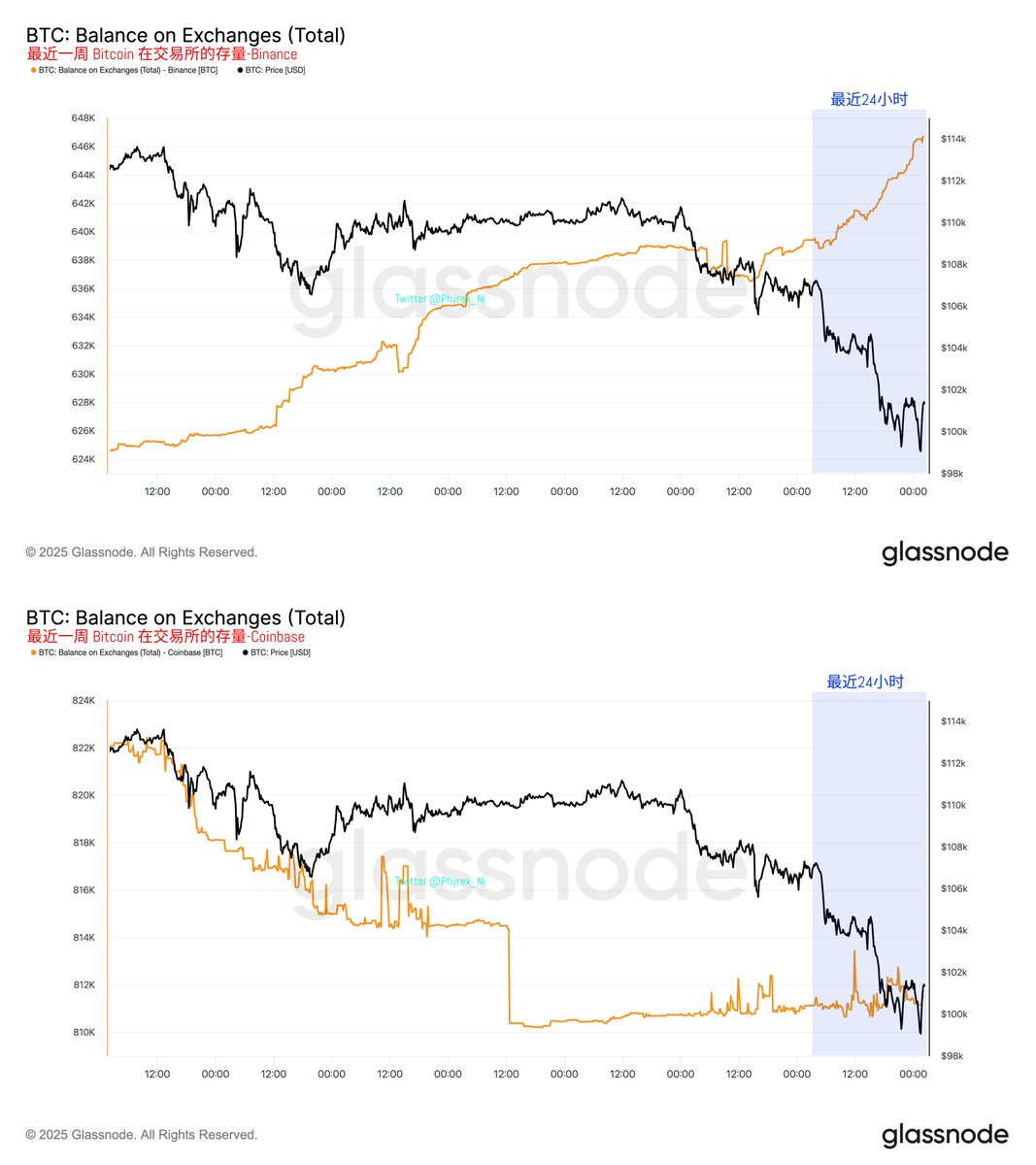 而 Binance 的 BTC 存量则出现了上升的趋势,大概增加了 20,000 枚 BTC 左右,这也代表着在 Binance 的投资者出现下跌恐慌抛售的迹象更加明显,部分投资者选择将手中的 BTC 存入交易所寻求离场。