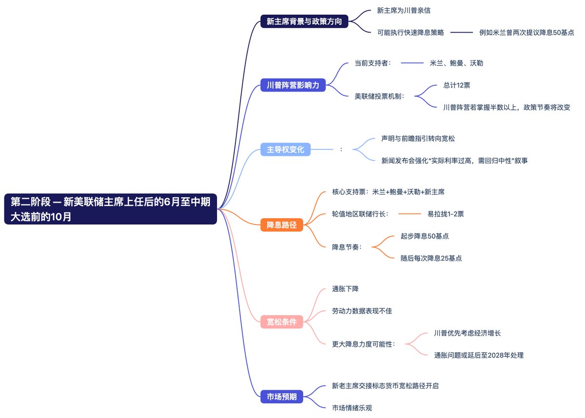 Secondly, regarding the path of interest rate cuts, based on the core votes of Milan, Bowman, Waller, and the new chair, it should not be difficult to garner 1 to 2 additional votes from the rotating regional Fed presidents (who are usually more sensitive to growth), forming a combination that starts with a 50 basis point cut, followed by 25 basis point cuts thereafter.