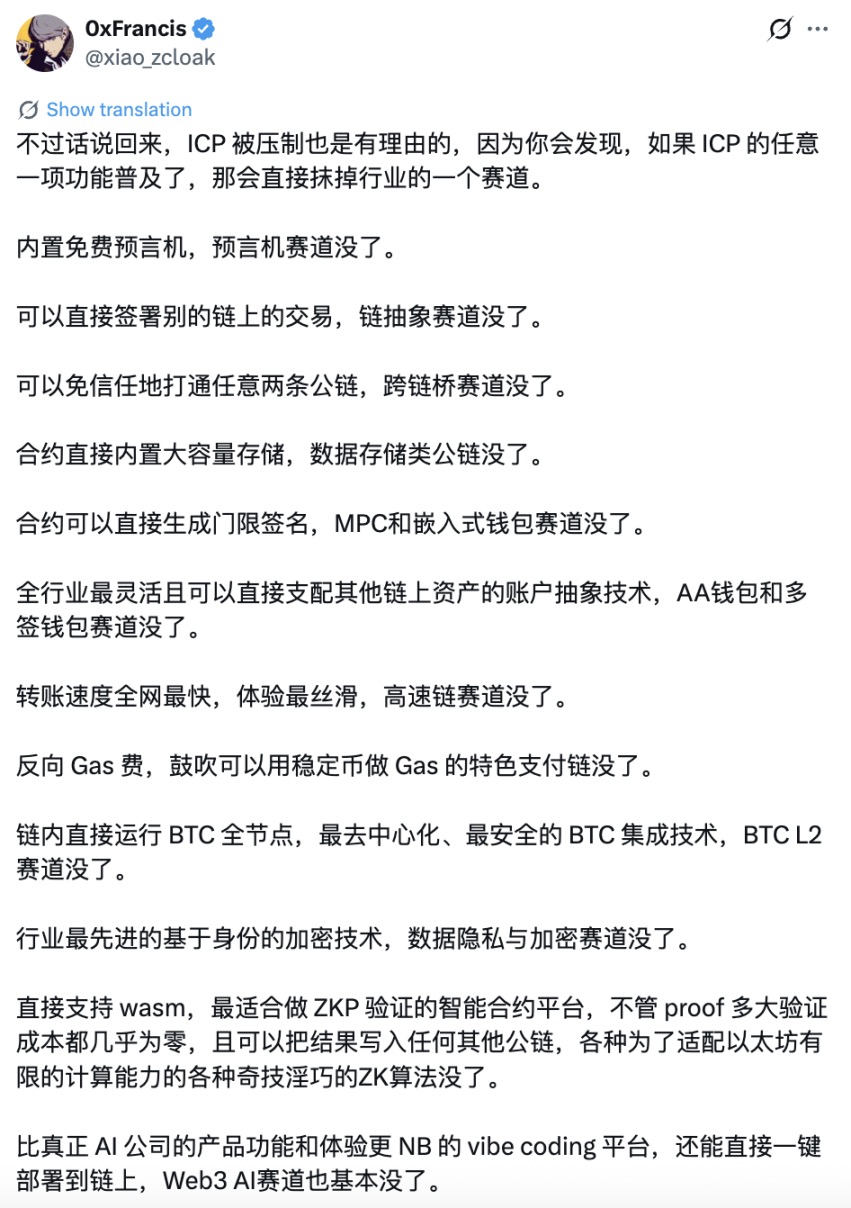 当然,包括 Haotian 也提到,这一切距离真正的落地还有一段距离。不过当 x402 与 AI 的热门投资标的已经被炒过一轮之后,价格偏低但想象力更丰富的 IC 自然就成为了资金追捧的热点。