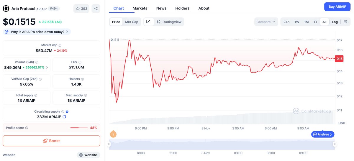 As the first project of the Vibe launch, the only child project of the $IP ecosystem that has completed TGE, Aria's performance has been generally satisfactory.