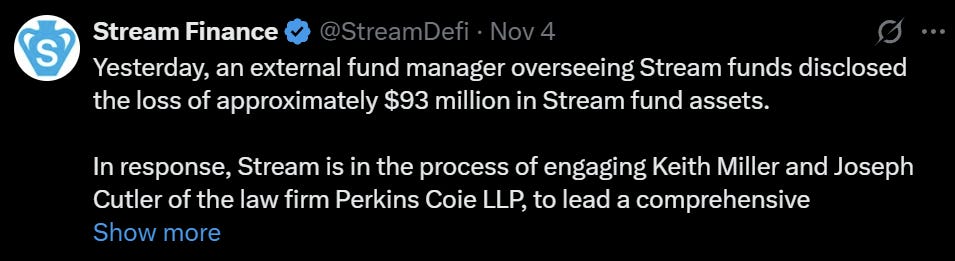 • Stream Finance halted withdrawal processing because it had secretly lost a significant amount of user funds ($92 million) shortly before and could not handle all withdrawal requests