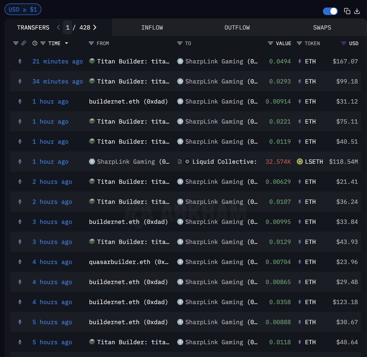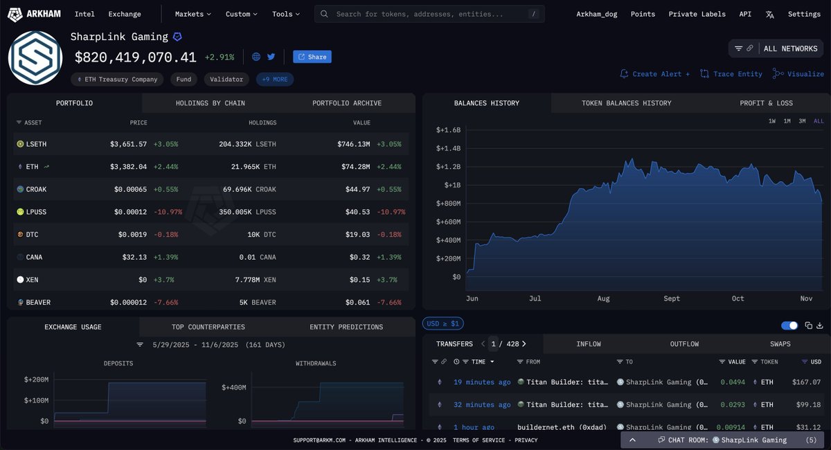Arkham verified Sharplink wallets appear under the Sharplink entity on Arkham - this wallet is not one of those.